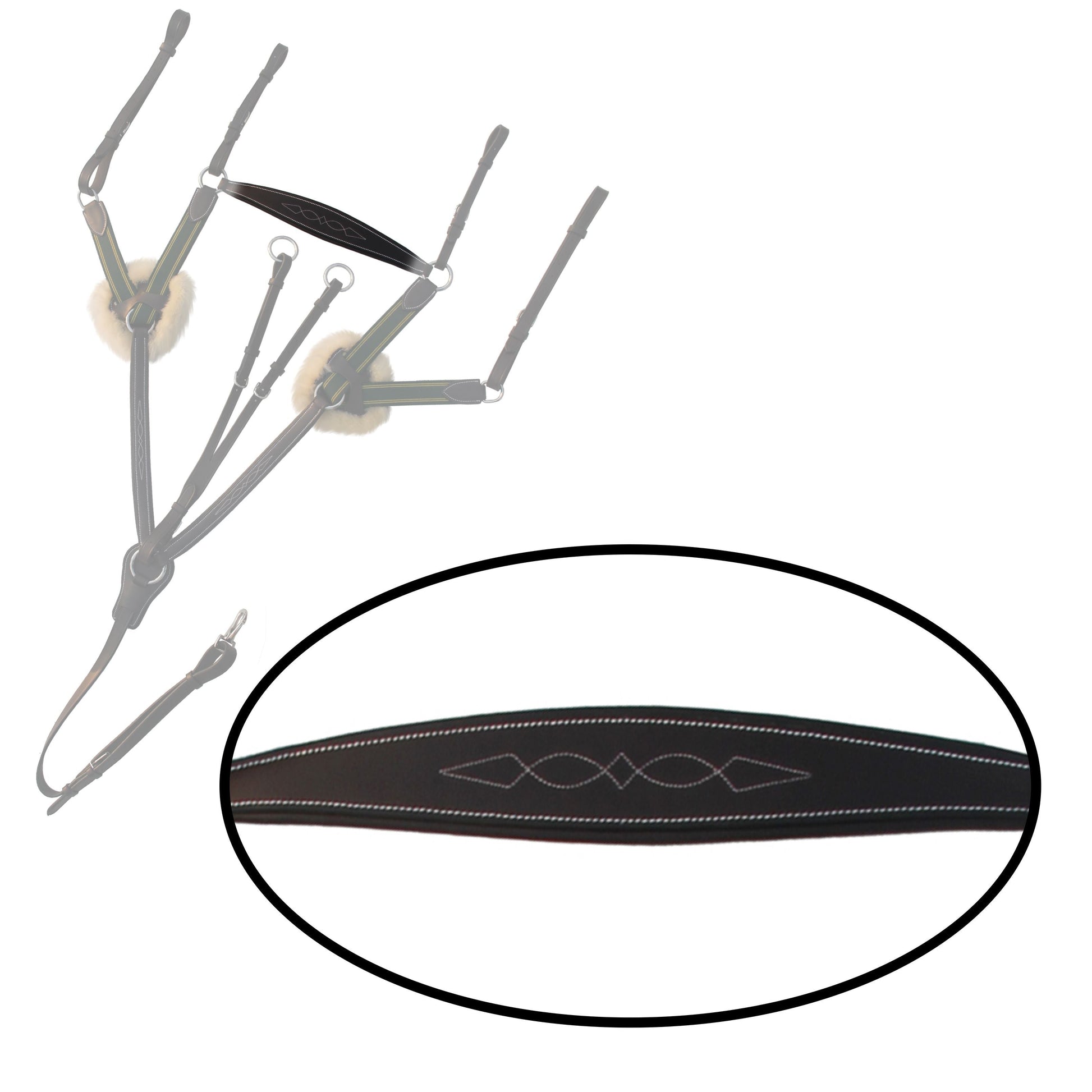The elasticity of the chest plate ensures the ultra-comfortable fitting in squeezing as well as swelling states and makes this breastplate an elegant choice for the riders who love style with better control and comfort. Multi Punches adjustment points ensure a perfect fit. Soft padded Wither with Running Attachment makes it durable for show jumping.