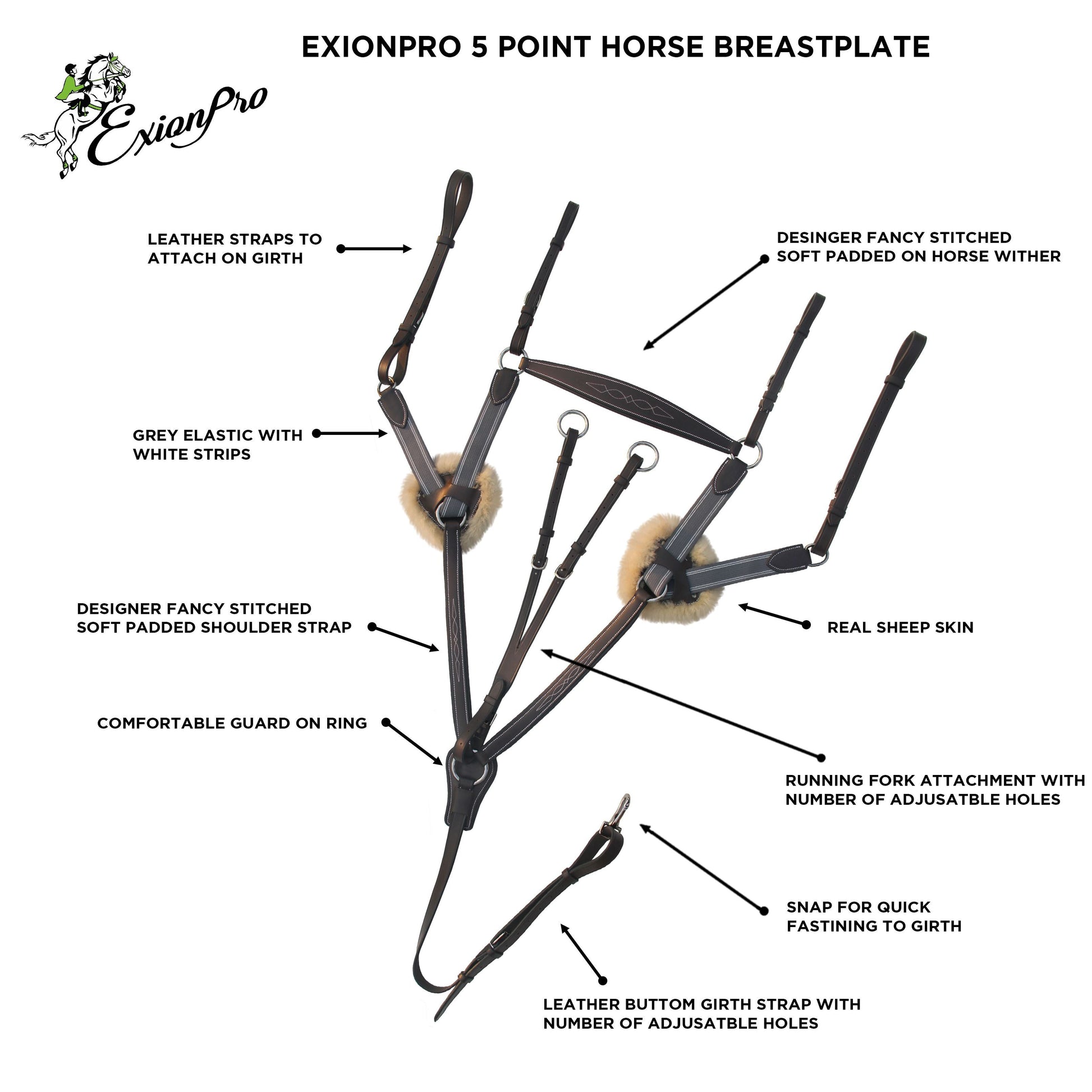 ExionPro brings you the most trendy, fashionable, and very technically crafted Special design breastplate to hold a horse from 5 points to increase the comfort and control of Ride and Mount. The overarching objective of a breastplate is to keep the saddle centred.