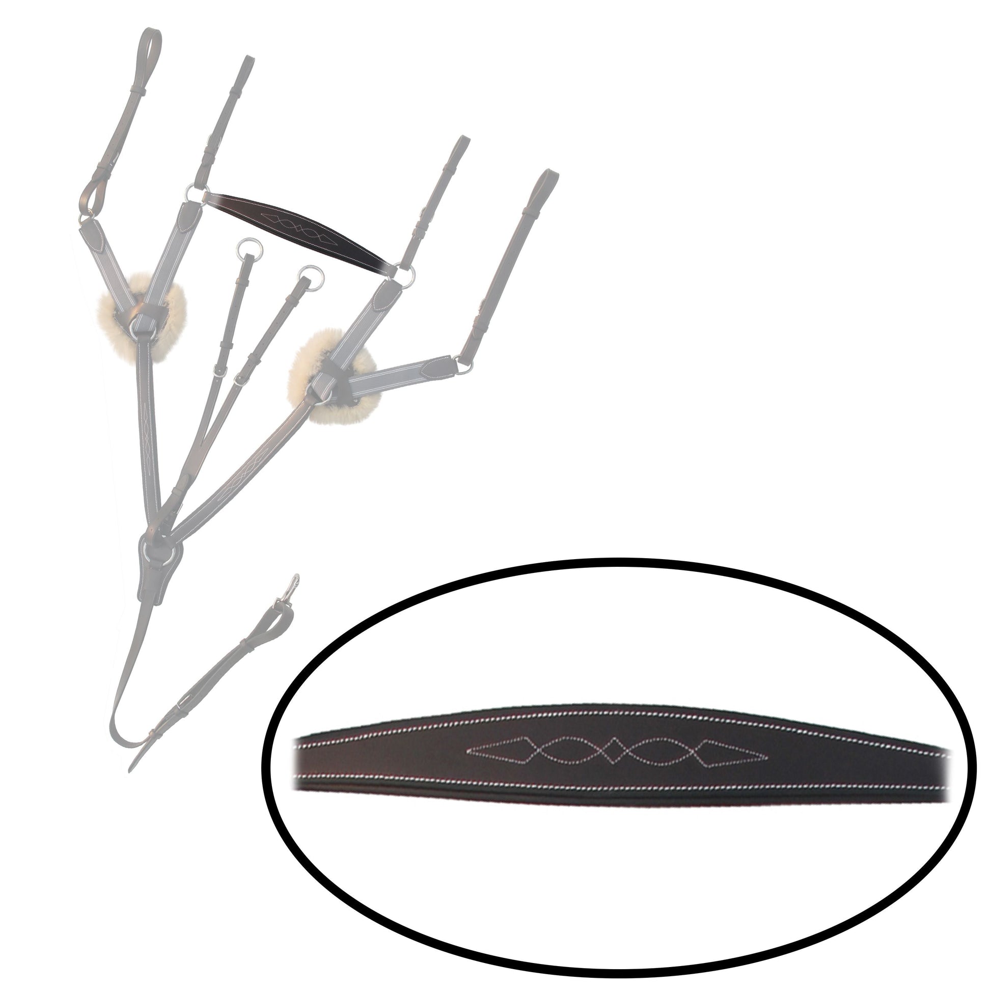 The elasticity of the chest plate ensures ultra-comfortable fitting in squeezing as well as swelling states and makes this breastplate an elegant choice for riders who love style with better control and comfort. Multi Punches adjustment points ensure a perfect fit. Soft padded Wither with Running Attachment makes it durable for show jumping.
