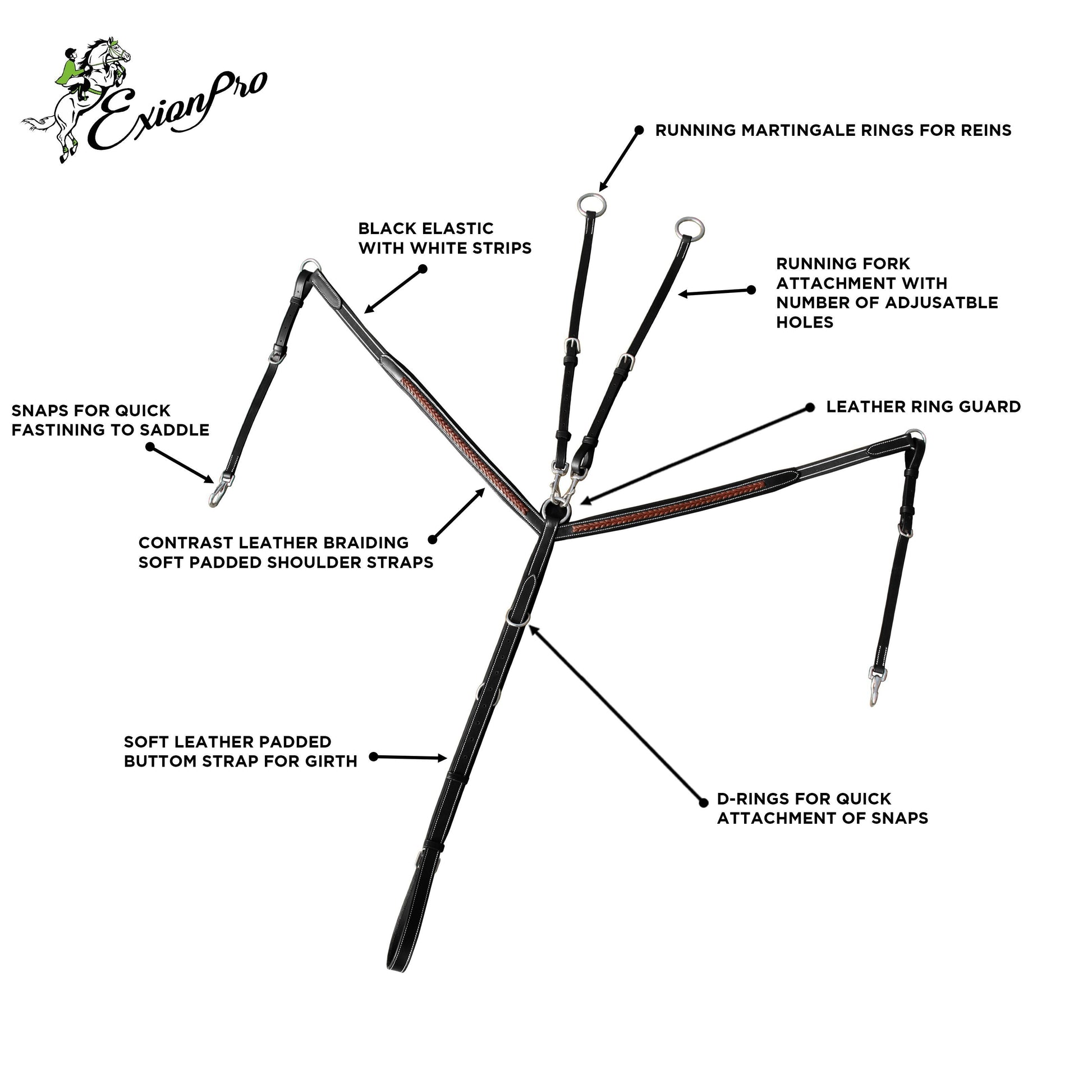 Exion Soft Padded And Contrast Braided Breastplate & Separate Running Attachment with Elastic