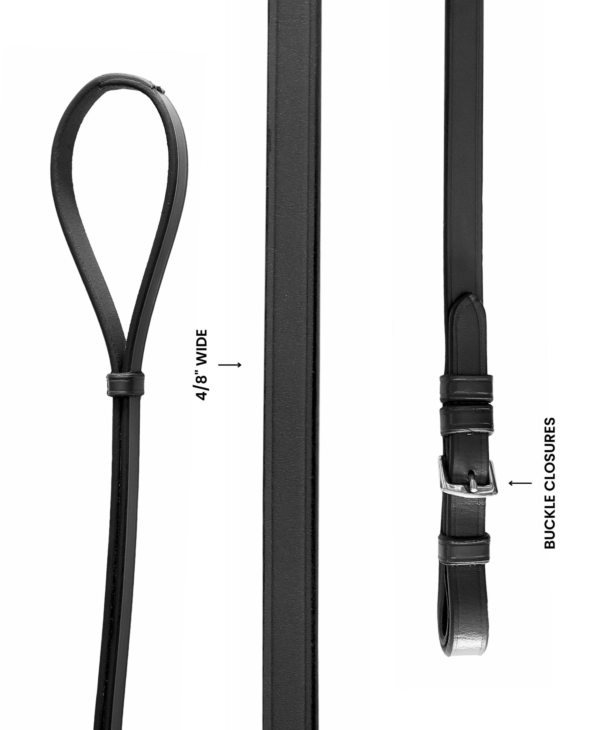 Whether you're putting together a full dressage double bridle or simply need a dependable curb rein for your horse, these reins offer understated quality and timeless craftsmanship for every ride. Both the brown curb reins & the black curb reins are made to perform and endure.