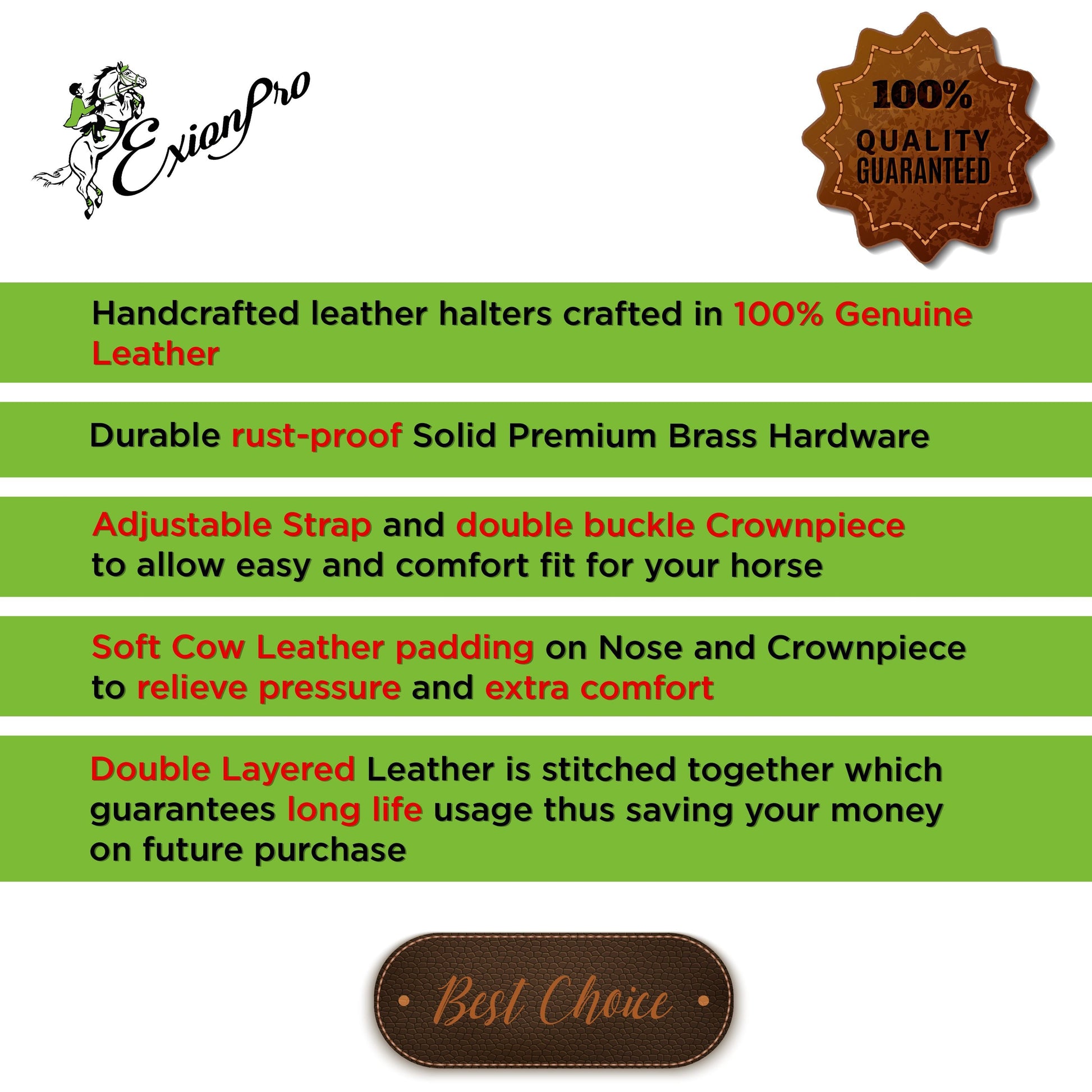 - PADDING: Soft Calf Skin Inner Padding On The Nose Band & Crown Piece Which Makes This Halter Very Comfortable