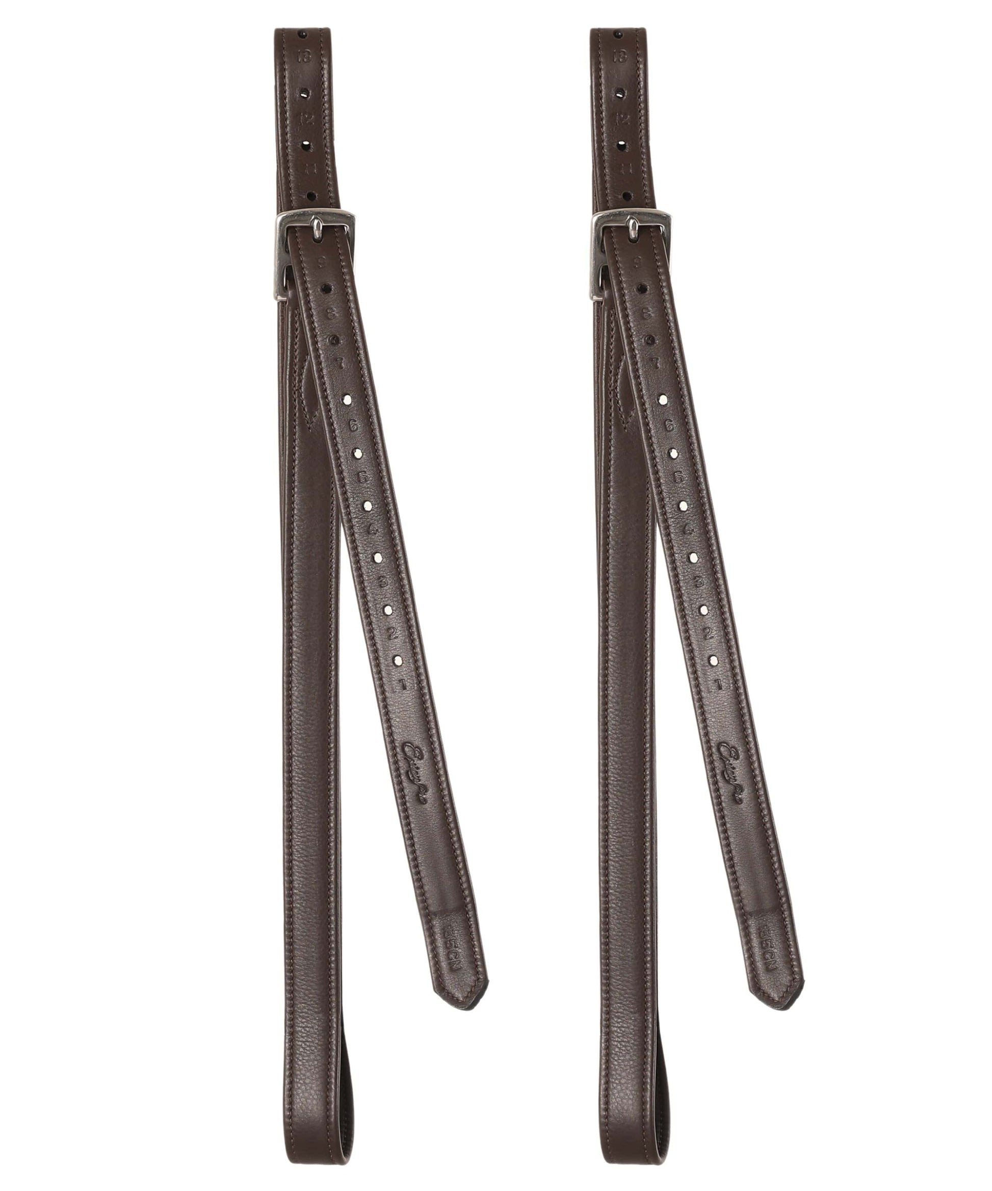 Special flat stainless steel buckles that insert perfectly over the stirrup bars and flat under the rider's leg, ensuring closer contact with the horse.